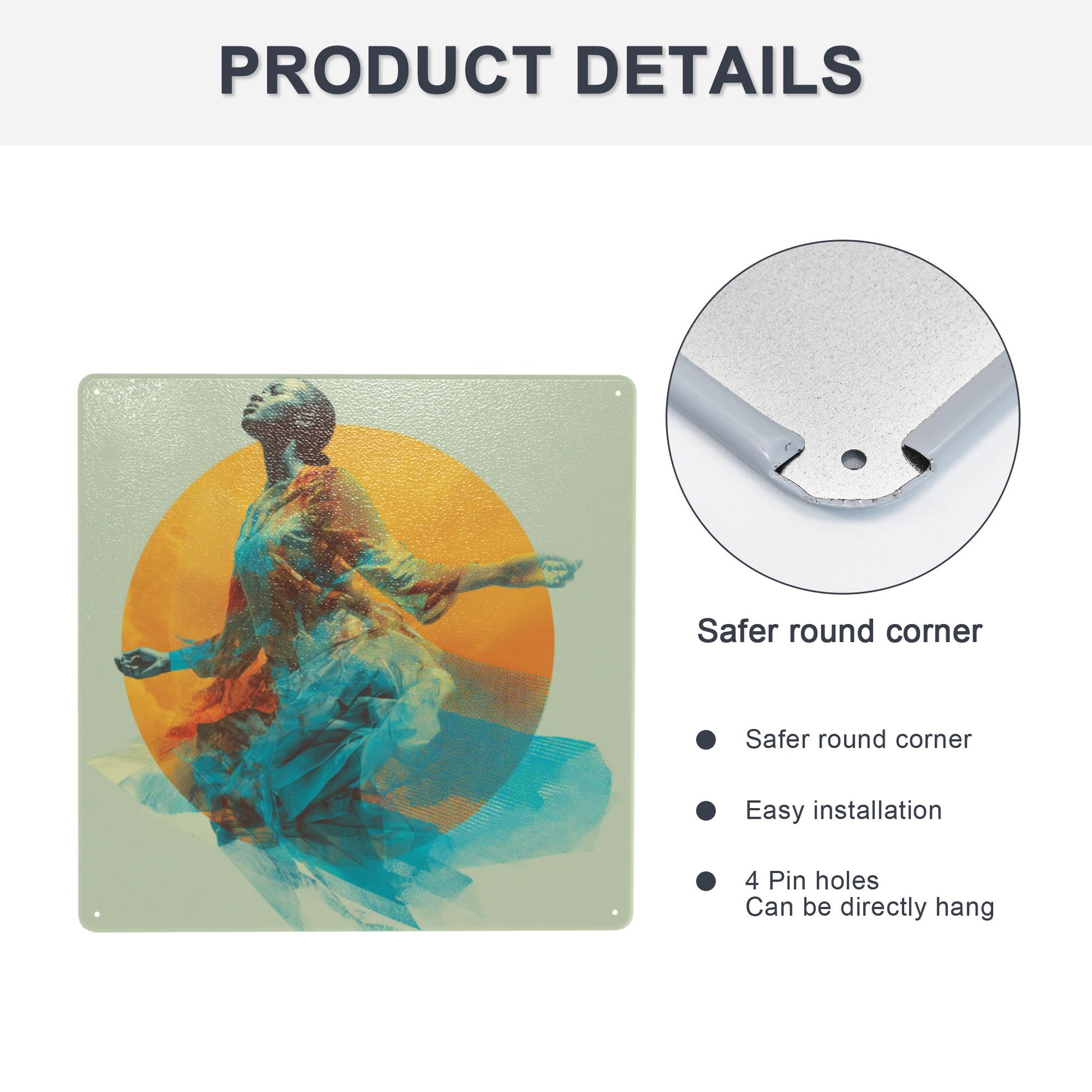 Printed with precision UV technology on high-quality tinplate, the sign is both durable and visually impactful. The pre-drilled holes allow for quick and easy mounting in any modern interior space, from studios to sanctuaries.