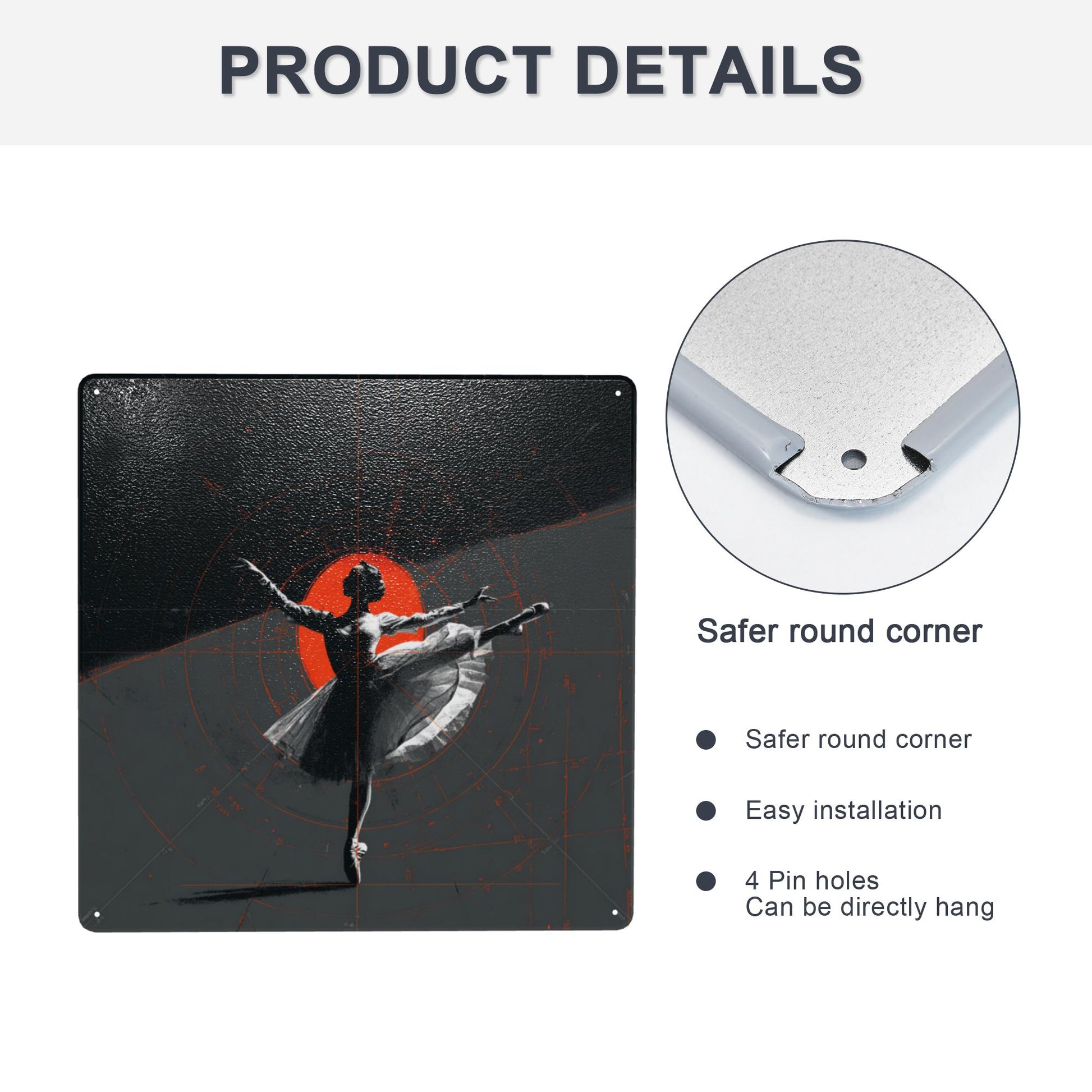 Grace Ignited – Ballerina Modern Tin Wall Art | Abstract Industrial Metal Poster | 12"x12" | Waterproof | Pre-Drilled & Easy to Hang