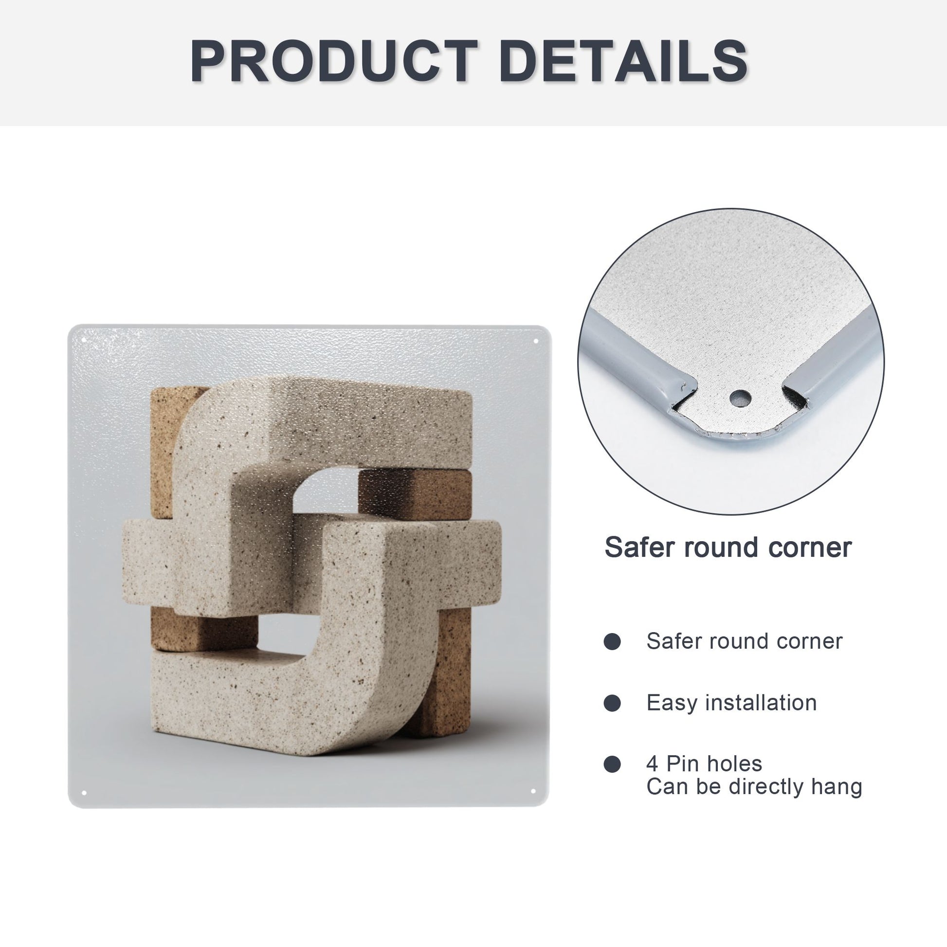 Interlocking Geometric Tin Wall Art | Modern Abstract Block Structure Metal Sign | 12"x12" Weatherproof Tinplate Decor
